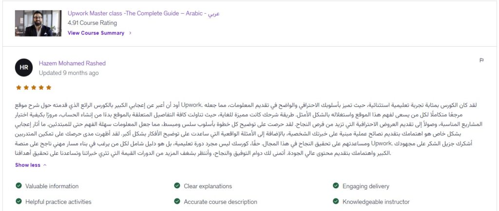 “الجلسة كانت مكثفة، منظمة، ومليانة value. حسن خلاني أفهم طريقة التفكير اللي بتخلي العميل يختارك. وعلمني إزاي أميز نفسي وسط الزحمة. بعدها بأسبوع، جاتلي دعوة من عميل أمريكي، ومن وقتها والشغل ما وقفش.”